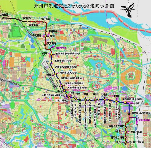 据了解,郑州市轨道交通 3 号线一期工程北起惠济区的省体育中心,南止于经济开发区的营岗站,总里程 25.488 公里,设车站 21 座,是郑州中心城区一条由西北至东南的轨道交通骨干线路,计划于2020年12月底实现载客运营。预计建成通车后,乘客搭乘地铁3号线全程只需48分钟,将有效缓解陇海快速路、京沙快速路交通拥堵,对完善郑州市轨道交通网络、加快郑州城市综合交通建设具有重要意义。